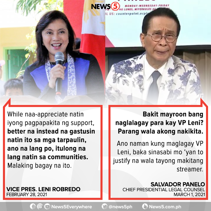 News5 On Twitter Mayroong Banners Ba Si Vp Leni Ito Ang Banat Ni Chief Presidential Legal Counsel Salvador Panelo Matapos Sabihin Ni Vice Pres Leni Robredo Na Huwag Gamitin Ng Kanyang Mga