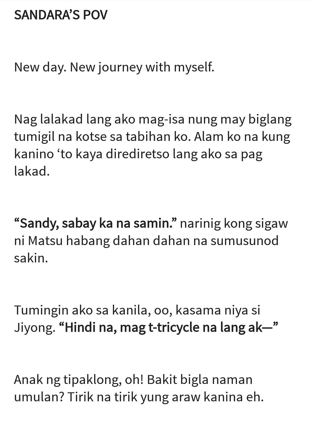 You all are telling me that the reason of my depression is my lack of faith. Nung una naaasiwa ako sa ginagawa niya. Ate pwede po pala akong pumunta ngayon sa parkhalos pabulong na pagpaalam ni Sam.
