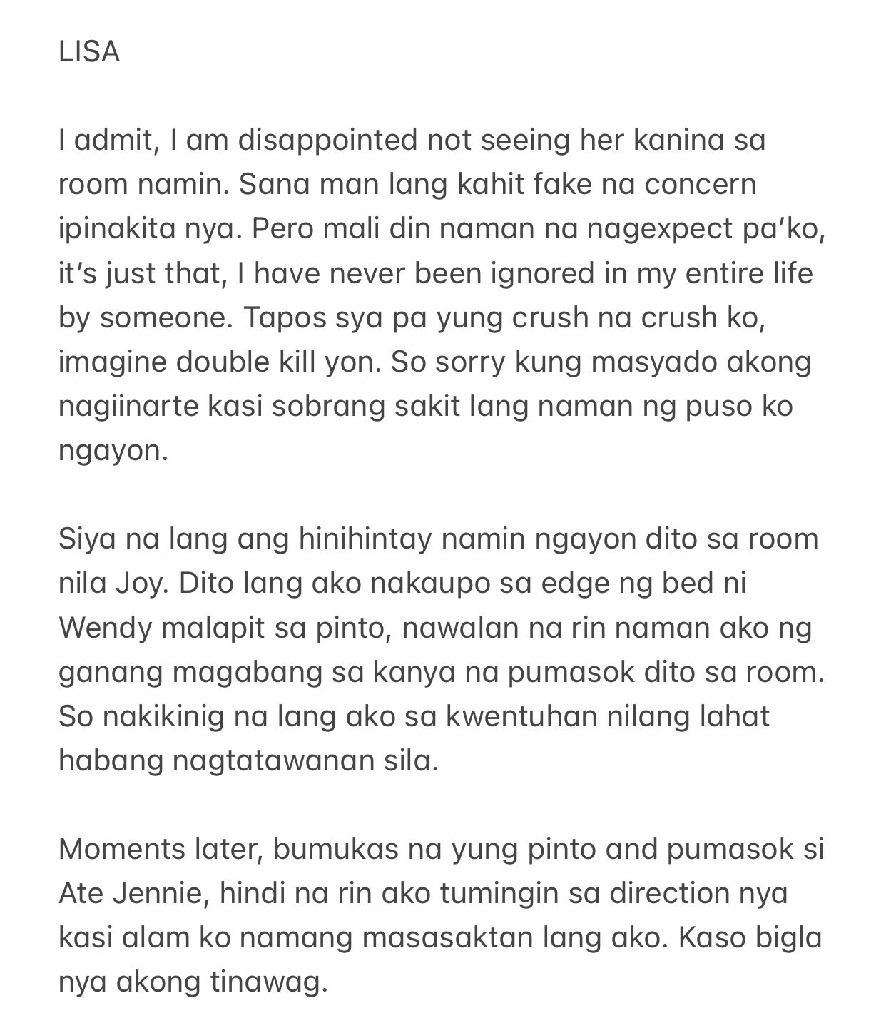 288 likes 4 talking about this. Kamay ko u both holding my arms pag nakakatakot na nagpupumiglas ako nun parang tanga lang tas wala na akong magawa kundi pumikit and then out of nowhere sa di ko maalala dahilan nagexchange seat kayo ni claire and that time dun ka na dumamoves Pinaglalaruan mo na daliri ko and pasimpleng. Eh kailangan pa ba namang i-reiterate na about you ito A persOn wHo is veRy conservative have positive outlook in lyf suMtyms I brEak pRomises dat can cause someone angry w me Grrrrr.